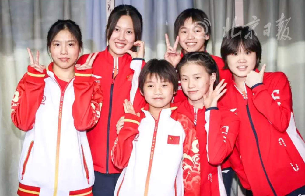 图片左起依次为:卢为、掌敏洁、李蕊汐、陈芋汐、全红婵、张家齐