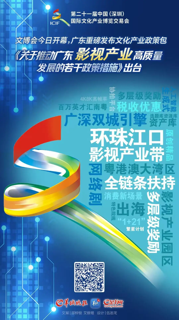 5月22日,第二十一届中国(深圳)国际文化产业博览交易会期间,广东重磅出台推动文化产业高质量发展“政策包”,提出一揽子87条政策措施。其中,作为全国首个电影、电视剧、网络剧联合发布的政策,《关于推动广东影视产业高质量发展的若干政策措施》(下简称“广东影视政策15条”)的发布,让影视工作者们备受鼓舞。