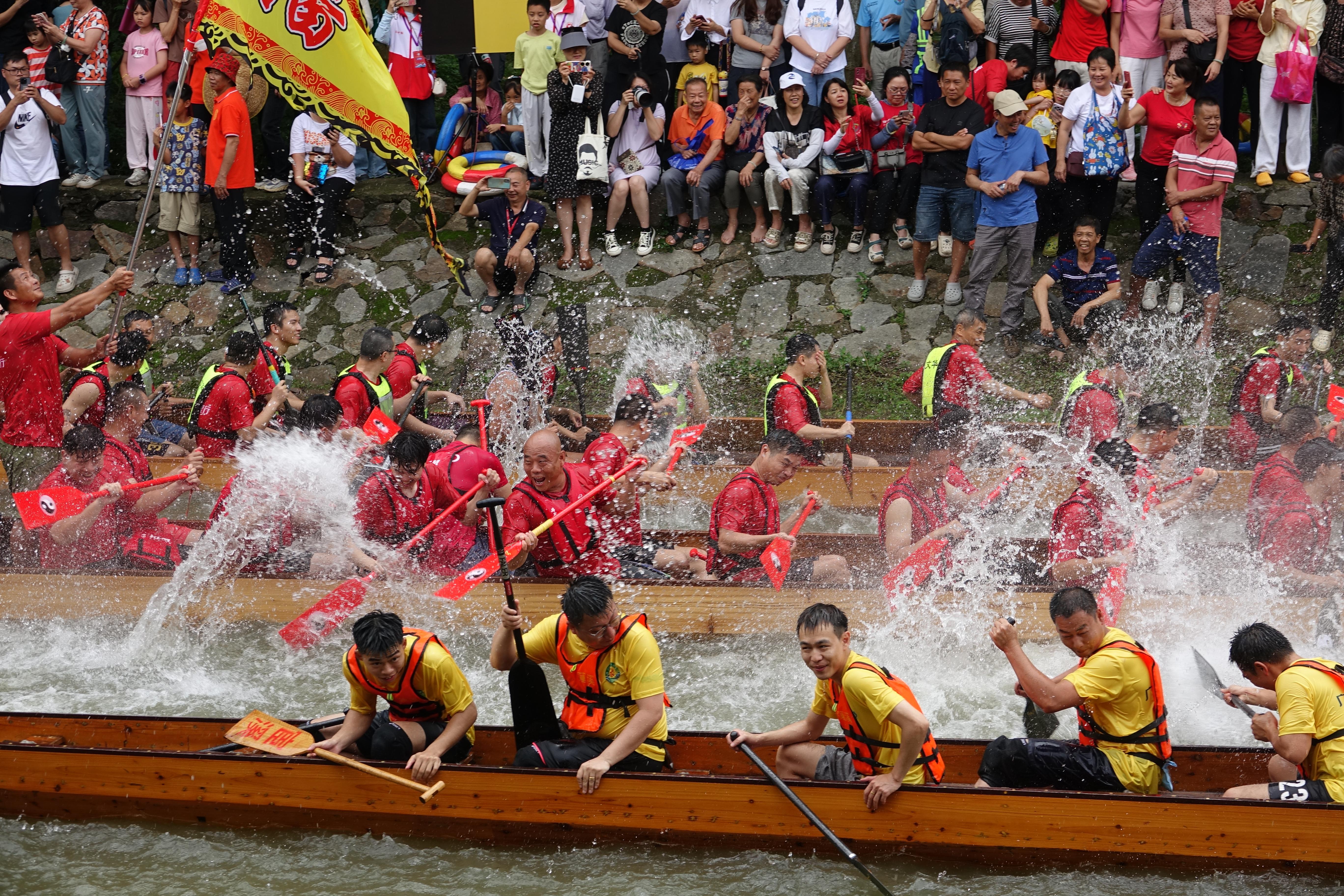 5月24日上午,2025年广州天河区第四届深涌杯龙舟赛在天河区汇彩路深涌河段举办。本届赛事由天河区前进村主办,历届赛事则由深涌流域的前进村、珠村、黄村轮流承办。