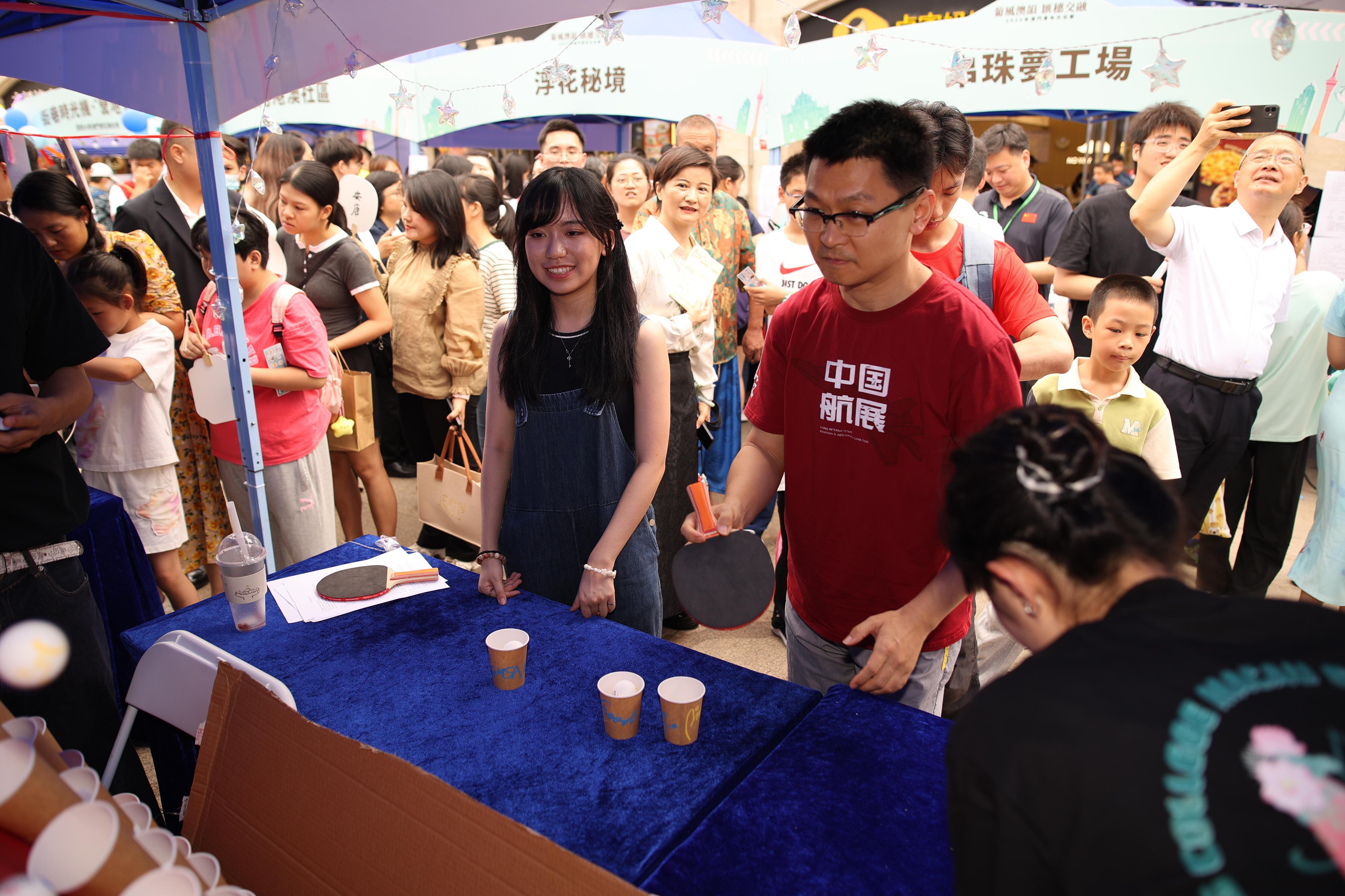 文化集市吸引了不少澳门籍青年学生及广州市民纷纷驻足观赏、参与游玩。大家体验着澳门特色手作、参与城市游戏、参观澳门世遗景点,人潮涌动,欢声笑语此起彼伏。串珠摊位上,彩色珠子在托盘里折射出斑斓光影;浮游花摊位前,容器里漂浮着干燥花朵,来自华南理工大学的沈同学正专注地调整花枝角度,“做成摆件放在书房,就像把澳门的春天带回家”。充满澳门特色的集市,也用着独特的笔触,勾勒出岭南文化的独特韵致,串联起澳门文化中西交融的独特魅力,成为三地文化共融的生动注脚,让现场群众深刻感受到粤港澳三地同根同源、共生共荣的文化脉络。