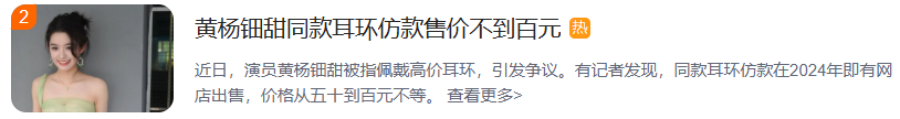 5月19日,话题“黄杨钿甜同款耳环仿款售价不到百元”冲上热搜。