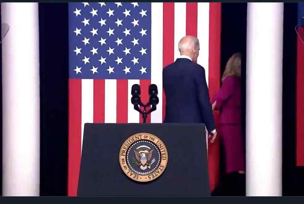 很多次,拜登发表完演讲后,都像孩子一样,被妻子吉尔领下台。哦,很多次,拜登还读错了演讲稿……