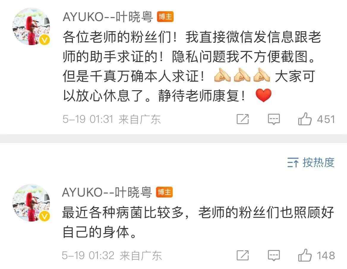随后,叶晓粤又在评论区告诉网友,自己是“直接微信发信息跟老师的助手求证的”,“隐私问题我不方便截图。但是千真万确本人求证!”