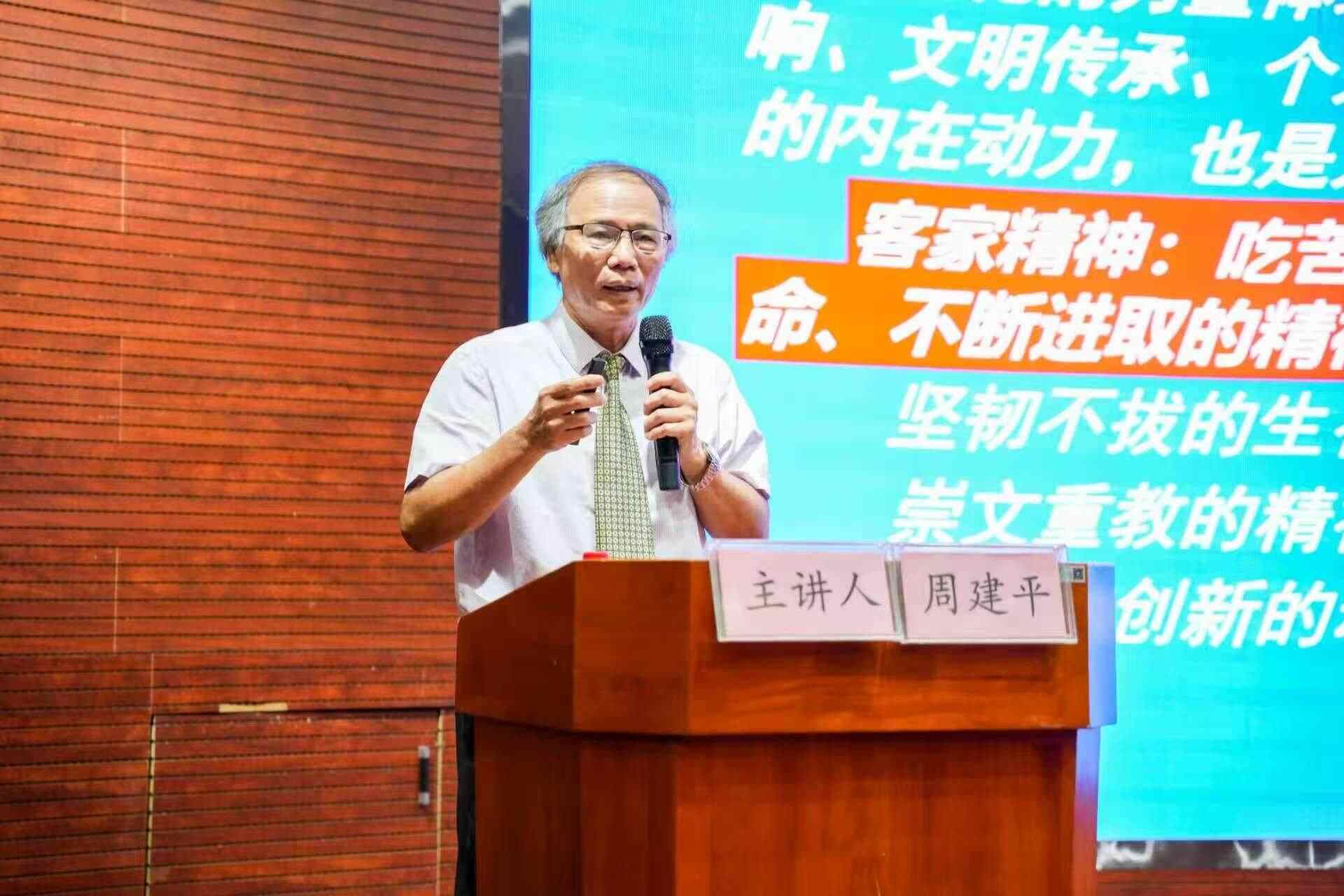 “千年迁徙路,何处是原乡?”周建平以这一充满历史纵深感的问题切入,瞬间吸引了在场观众的目光。他通过族谱文献的细致梳理、方言流变的深入剖析以及建筑遗存的实地考察,三维立体地还原了客家人五次大迁徙的壮阔文化轨迹。同时以河源围屋、福建土楼等典型案例,系统阐释了客家文化“耕读传家、崇文重教、开拓进取”的精神内核。
