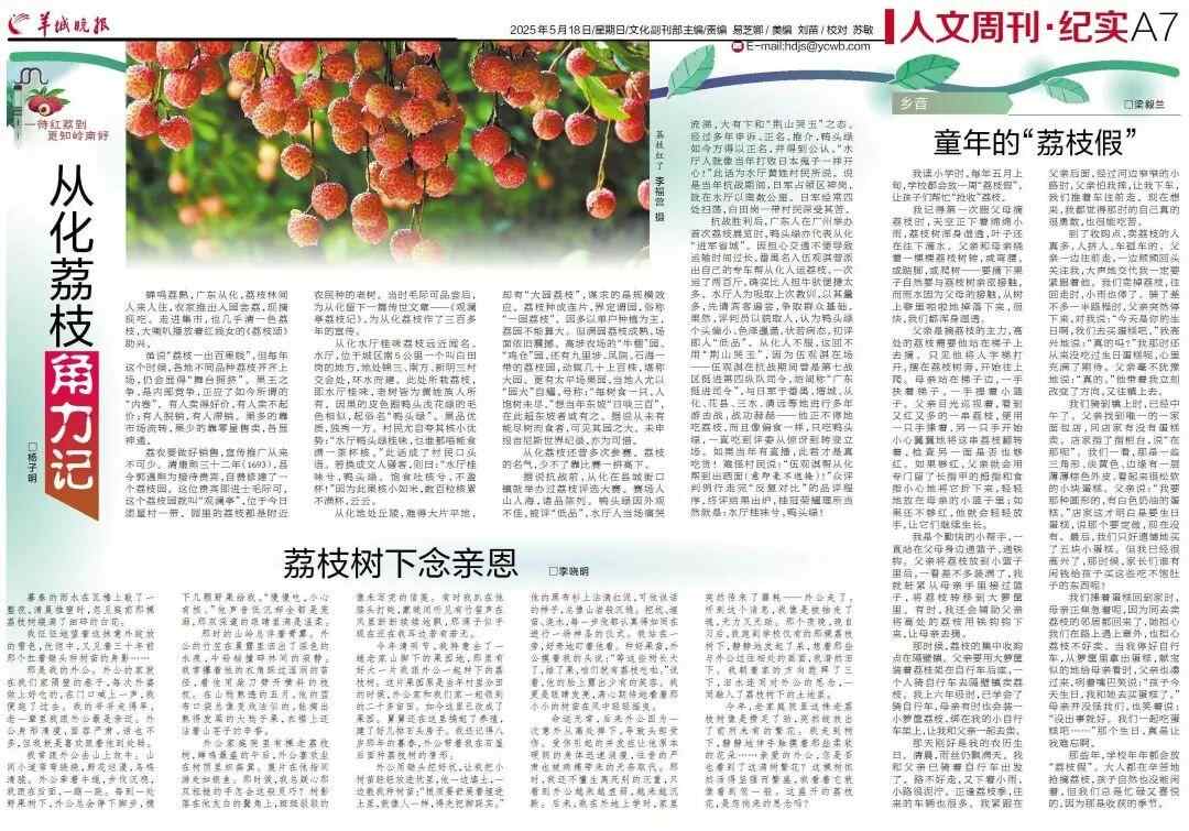 我读小学时,每年五月上旬,学校都会放一周“荔枝假”,让孩子们帮忙“抢收”荔枝。