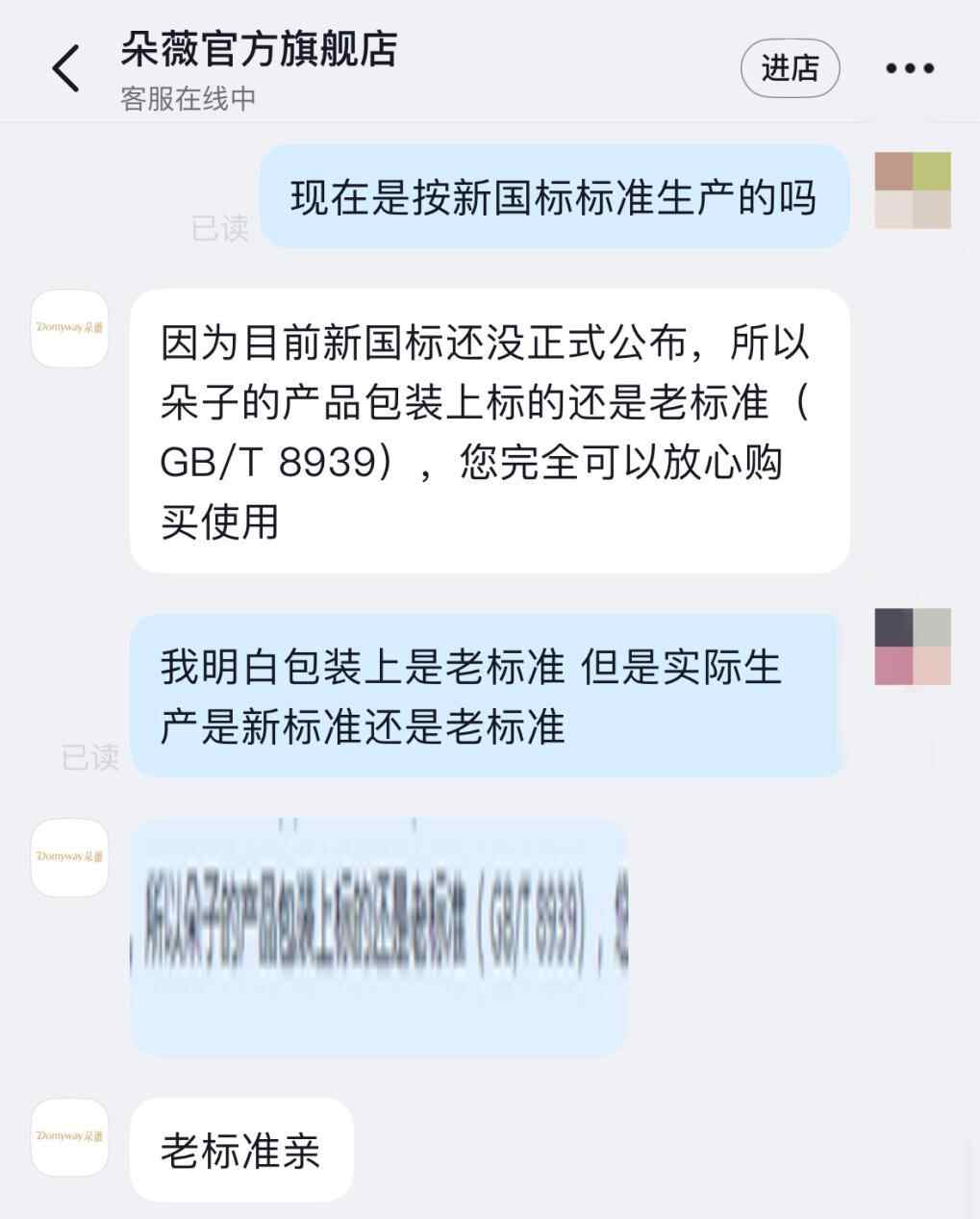 针对产品执行标准问题,5月19日,经视直播记者询问黄子韬卫生巾品牌——朵薇官方旗舰店。客服人员表示,当前产品生产仍是按老国标执行,因为新国标还没有正式实施,包装上的标签也是老国标。客服还强调,但这不影响产品使用,待新国标正式实施后将第一时间按新国标执行。