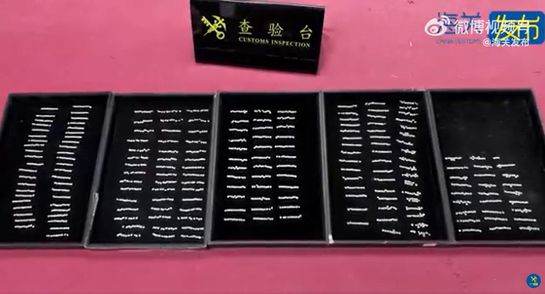 近日,罗湖海关在旅检进境渠道查获旅客在身穿的卫生巾内走私藏匿钻石616.43克拉,共计2003粒,案值逾27万元人民币。