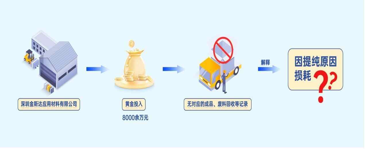 前期,深圳市税务局稽查局通过税收大数据分析发现,深圳金斯达应用材料有限公司研发投入巨大,远超同行业正常水平。对此疑点线索,检查人员比对了企业申报数据、财务资料、进销存数据等,发现该公司在检查所属期内“研发费用——直接材料”科目中有列支金额8000余万元的黄金投入,既没有对应的成品产出,也没有相应的废料回收等记录。