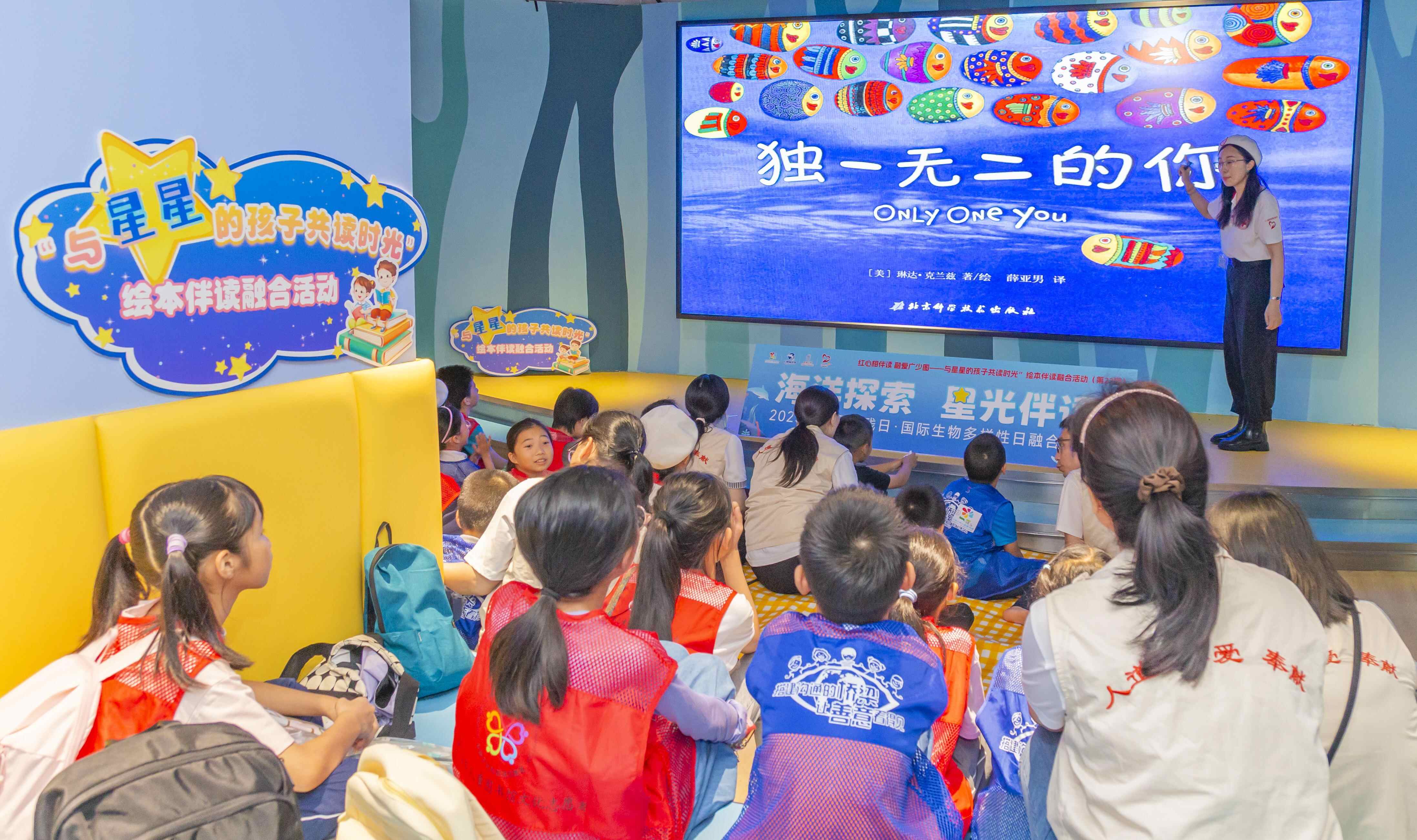 5月18日,适逢第35个“全国助残日”、第25个“国际生物多样性日”前夕,第22期“红心相伴读,融爱广少图——与星星的孩子共读时光”绘本伴读融合活动之“海洋探索 星光伴读”在广州海洋馆举办。