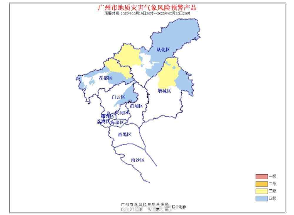 除了防风雨,广州市气象部门和广州市规划和自然资源局还提醒广州多地,特别是花都、从化、增城等区,需防地质灾害风险。经广州市规划和自然资源局与广州市气象局联合会商,预计从5月19日20时至20日20时,花都区梯面镇、花山镇、花东镇,从化区鳌头镇,增城区派潭镇、小楼镇地质灾害气象风险预警等级为3级。