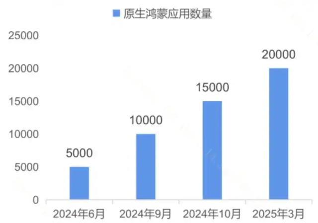 图:原生鸿蒙应用数量持续增长。信息来源:国海证券