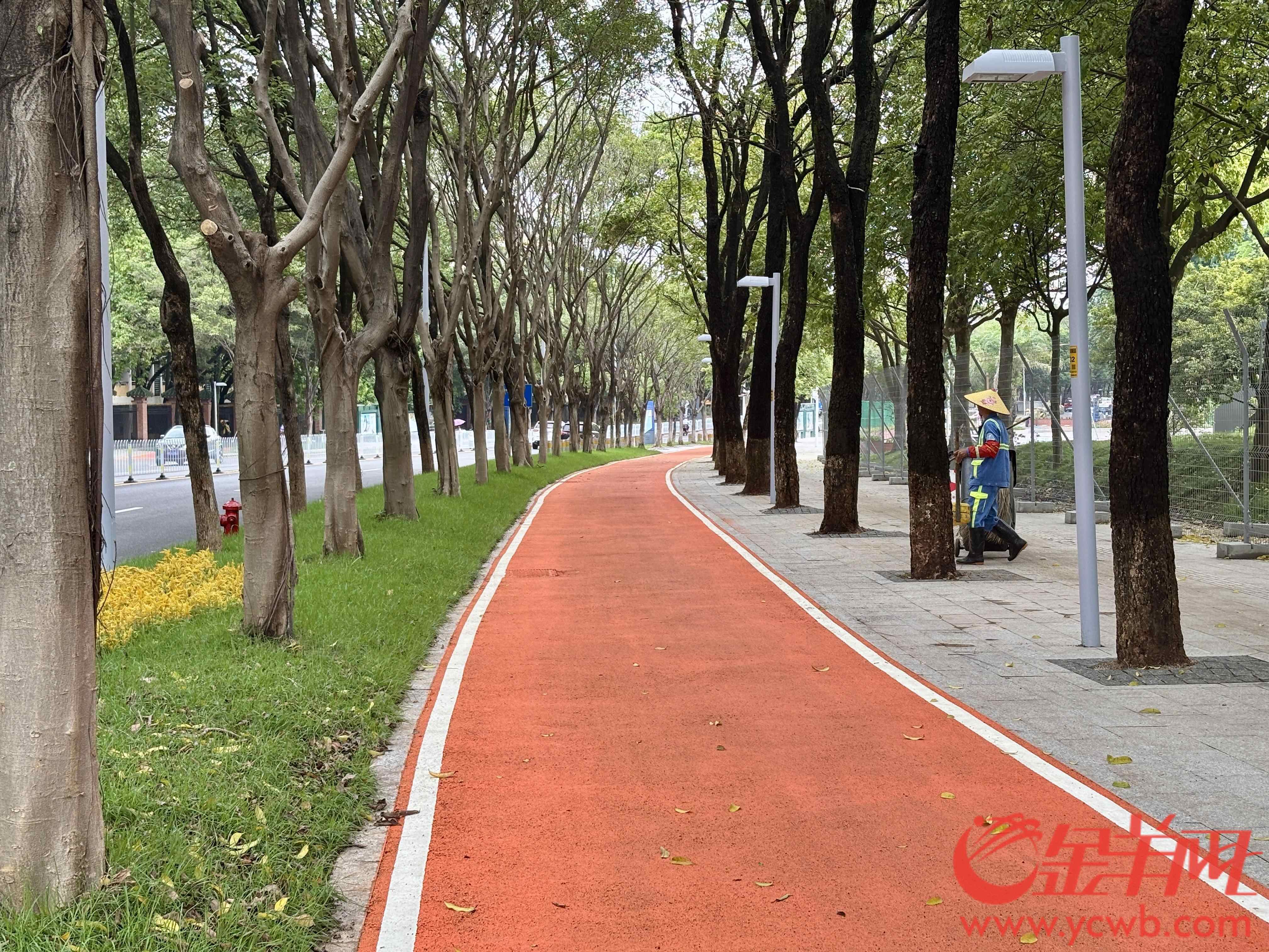 在大学城体育中心周边的精致街区,通过优化路段及节点交通组织方式,完善慢行交通系统,改造提升舒适慢行道约55.8公里,形成自行车道、慢跑道和人行道贯通的友好通行空间。内、中、外环则分别以活力橙、文化蓝、科技红为底色,串联高校、科技园区和体育场馆。周边共改造绿地面积约2.5万平方米,在附属公用设施设计中融入岭南文化,彰显青春气息。