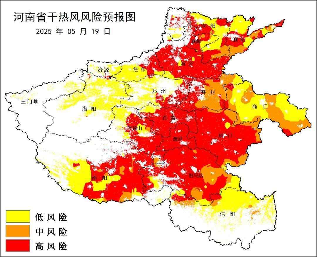 据河南省气象服务中心消息,由于19日到21日河南省气温较高,中东部、北部局部干热风发生风险较高,对小麦灌浆有一定不利影响,请农民朋友科学灌溉,做好“一喷三防”。同时由于近期高温干燥,全省大部麦区火险气象等级持续偏高,大家警惕森林火灾的同时,也要警惕麦区火灾的发生。