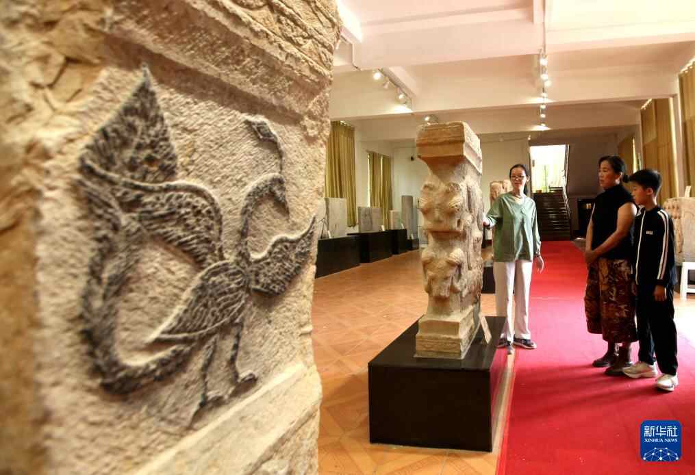 5月16日,游客在山东省临沂市平邑县博物馆参观游览。