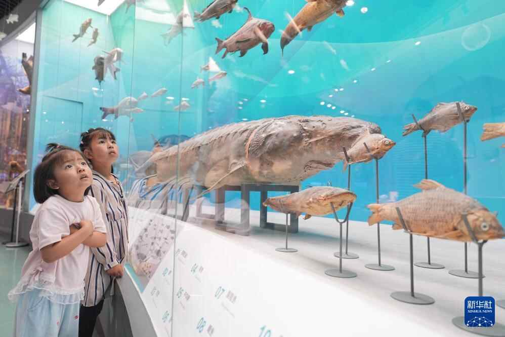 5月17日,两名小女孩在重庆自然博物馆重庆厅参观。