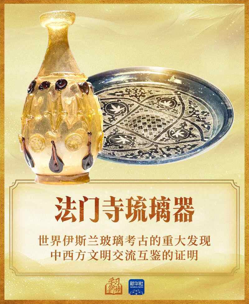 2014年3月,习近平主席在巴黎联合国教科文组织总部发表演讲时,特别提到了1987年在陕西法门寺地宫中出土的20件精美的琉璃器,这是唐代传入中国的东罗马和伊斯兰的琉璃器。他说:“我在欣赏这些域外文物时,一直在思考一个问题,就是对待不同文明,不能只满足于欣赏它们产生的精美物件,更应该去领略其中包含的人文精神”。