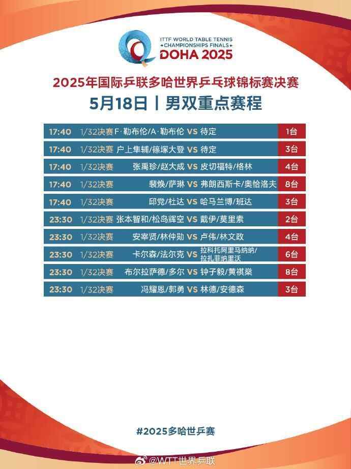 今天(5月18日),多哈世乒赛迎来第二个比赛日,中国军团将在混双、女双、男女单打等多条战线全面出击。