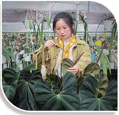 培育更多新品,离不开产学研深度融合。“我们积极与浙江农林大学、浙江省园林植物与花卉研究所紧密合作,选育既可赏花又可观叶的新品种。”廖万甜说。经过不断繁育新品种,廖万甜的基地规模从原来的100平方米扩大到1万平方米,成为浙江省最大的花烛育种基地。