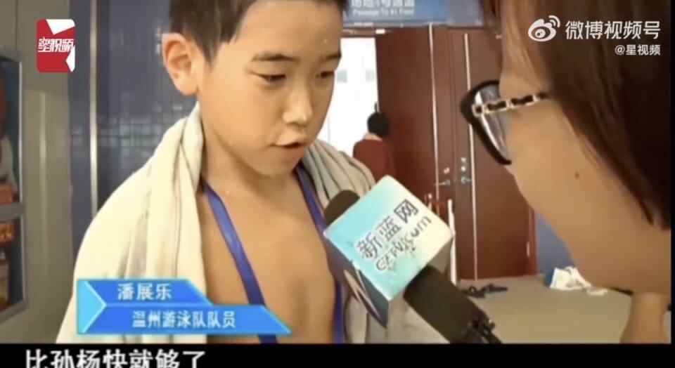 潘展乐与孙杨同台竞技,他儿时接受采访时的视频也再一次被重温,当时年仅10岁的他把孙杨当做偶像,谈及未来的目标时,他说:“比孙杨快就够了”。
