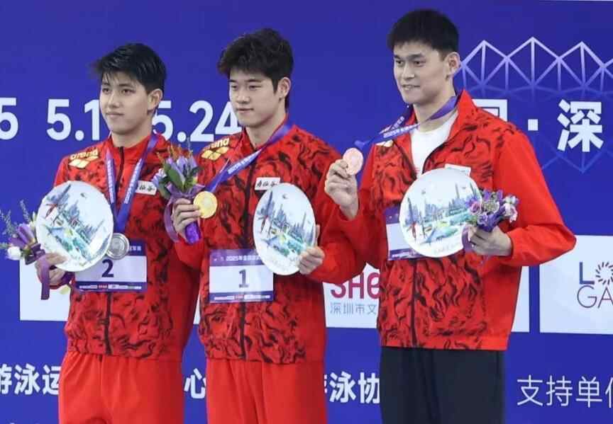 5月17日晚,2025年全国游泳冠军赛男子400米决赛,潘展乐3分45秒34获得冠军,费立纬3分45秒57收获亚军,孙杨则游出3分47秒53获得季军。