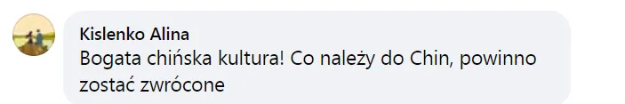 波兰语网友凯瑟琳可·艾琳娜评论:“中国文化博大精深。属于中国的东西应该归还回去!”