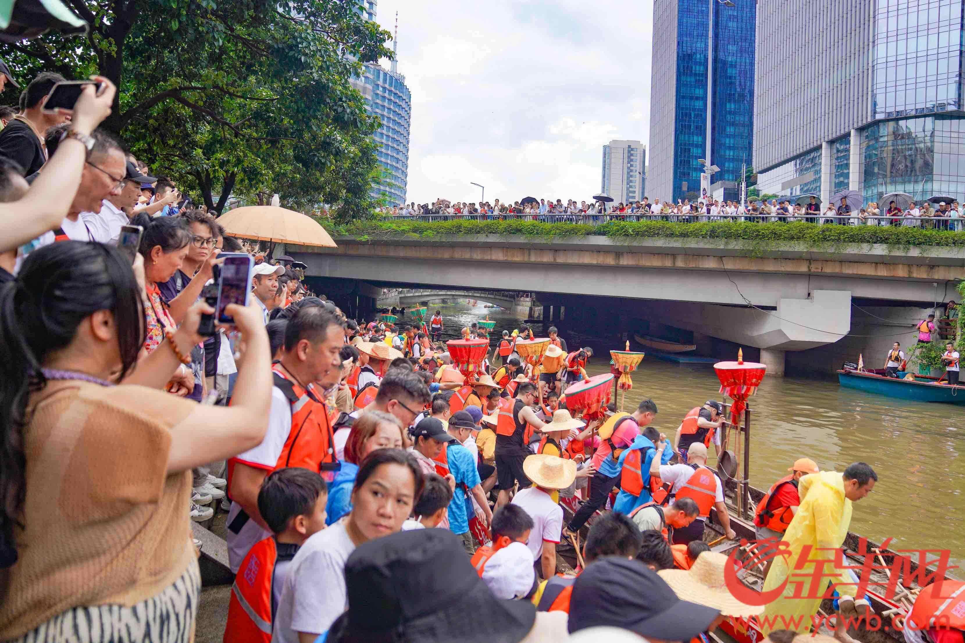 “龙船采青”是广东地区端午节前的标志性仪式,5月18日,午后的一场“龙舟水”没有浇灭龙舟热,猎德涌边人山人海,猎德村老青少齐上阵,不惧雨水湿衫,正式开启全民龙舟季欢乐时刻。