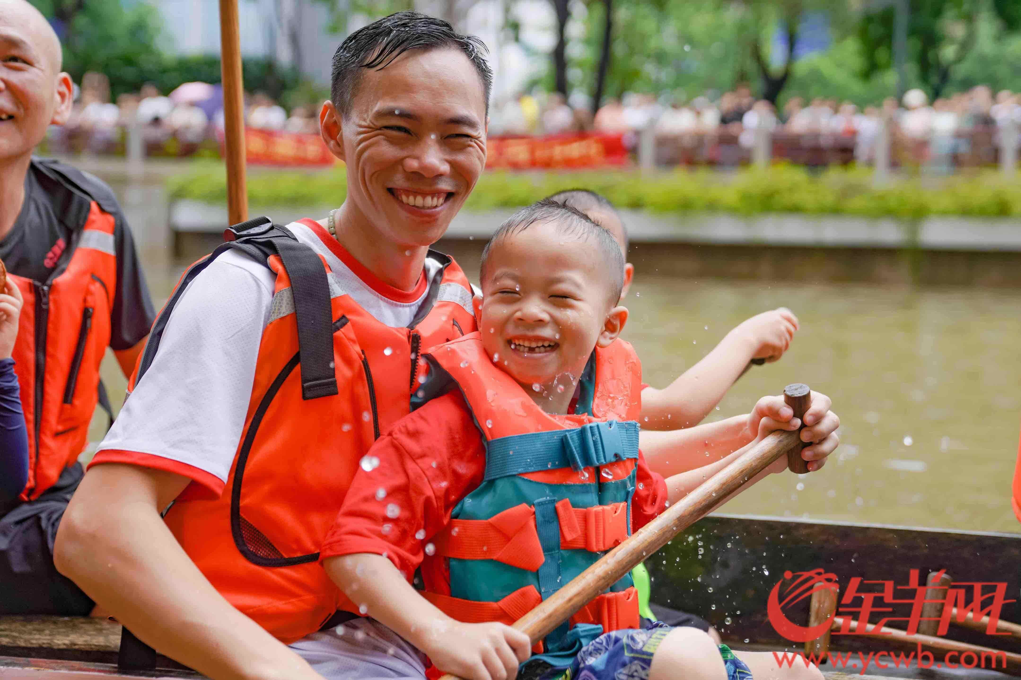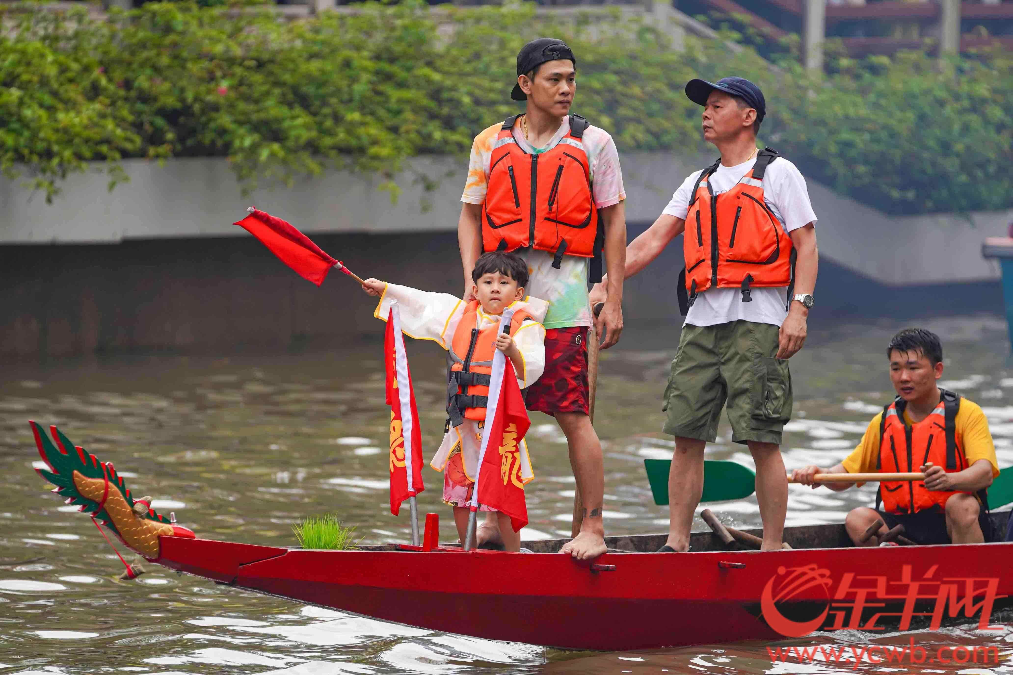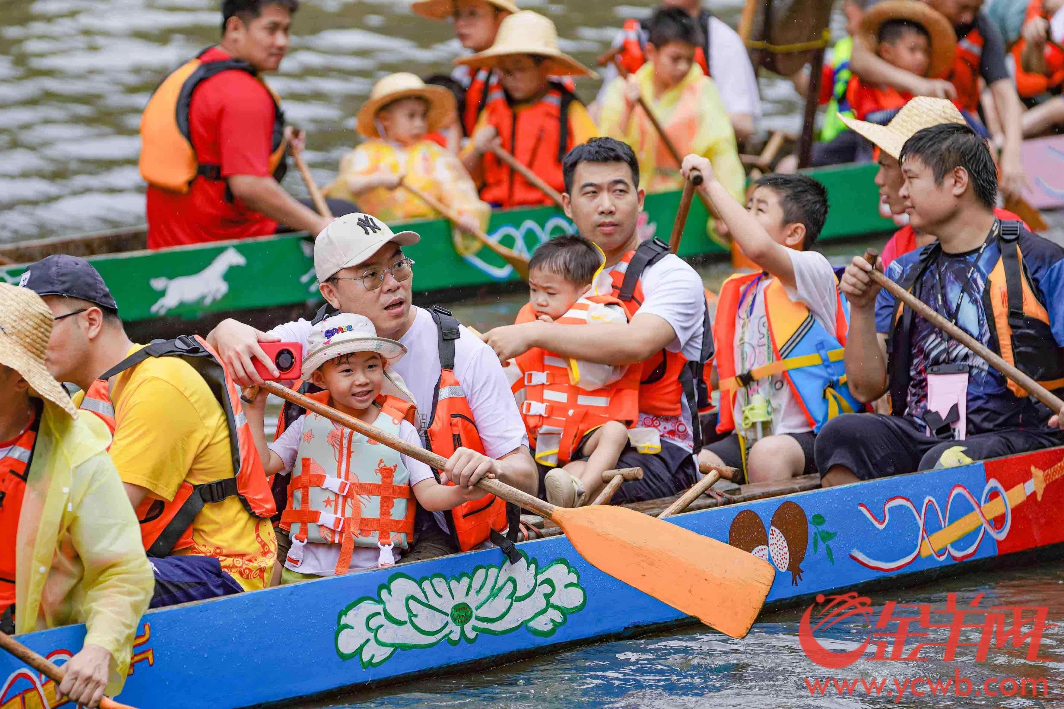 现场,猎德村老青少三代齐上阵十分惹眼。猎德村相关负责人介绍,猎德村亲子游龙历史悠久,爷爷带孙,爸爸带儿,代代传承,村中有三类片船,只按管理划分,村民不分姓氏划船,象征同心同德、团结协助、共同前进的精神。