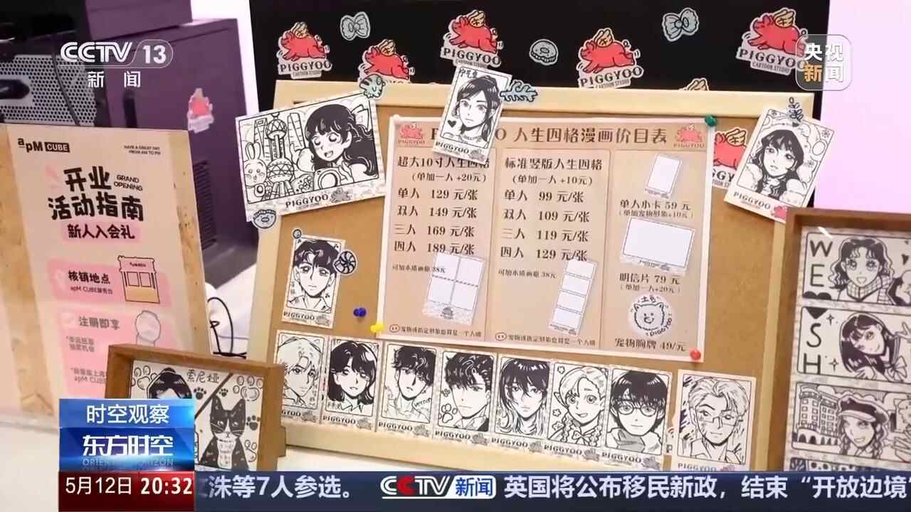 除了趣味商品,花99元画一幅“人生四格”漫画也成了年轻人的热门体验之一。消费者可以在心愿纸上写下想要记录的画面与祝福语,仅需等待半小时,就能获得一幅独一无二的“高光时刻”漫画。
