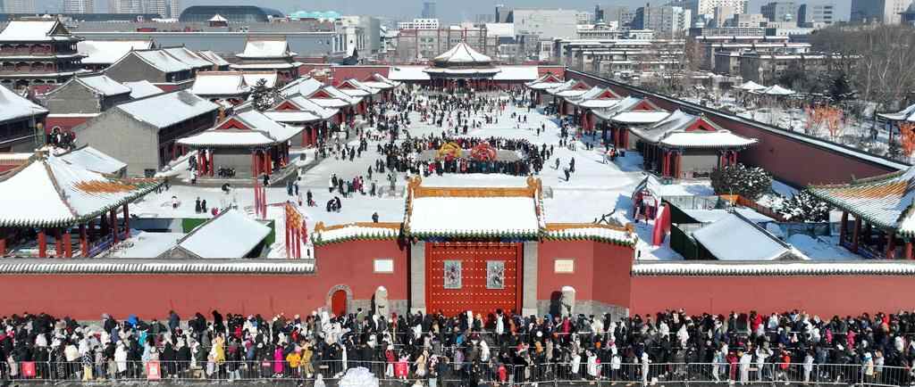 2025年1月31日,游客在沈阳故宫参观(无人机照片)。新华社记者 李钢 摄