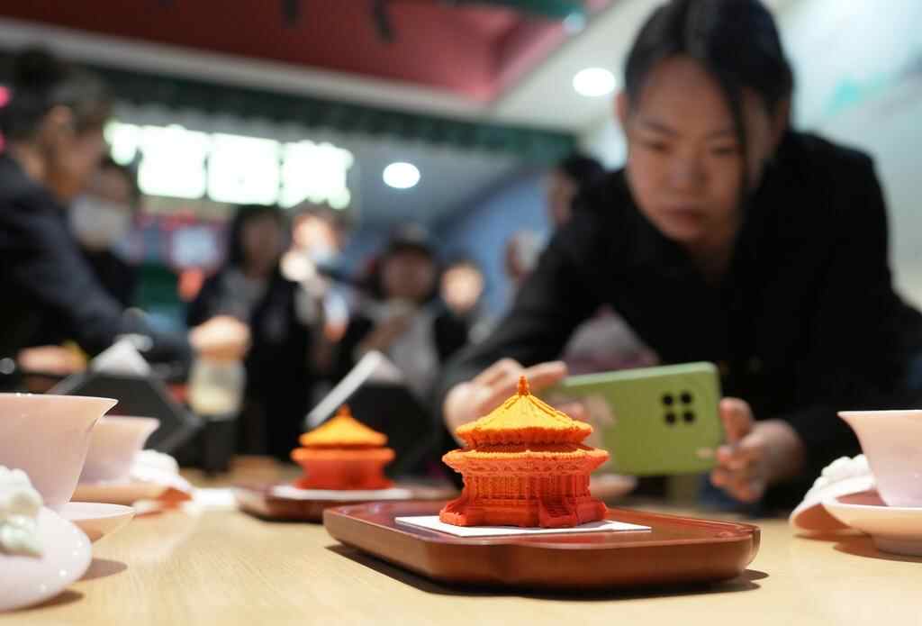 2024年5月10日,游客在沈阳故宫拍摄“大政殿慕斯蛋糕”。新华社记者 李钢 摄