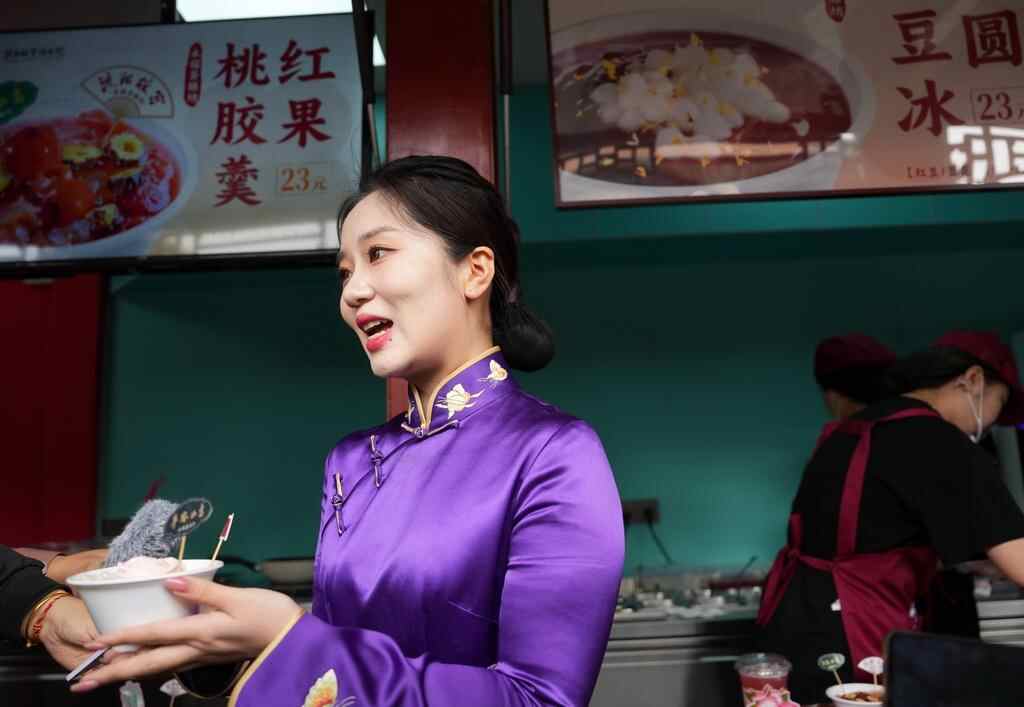 2024年5月10日,沈阳故宫博物院讲解员为游客介绍美食文创产品。新华社记者 李钢 摄