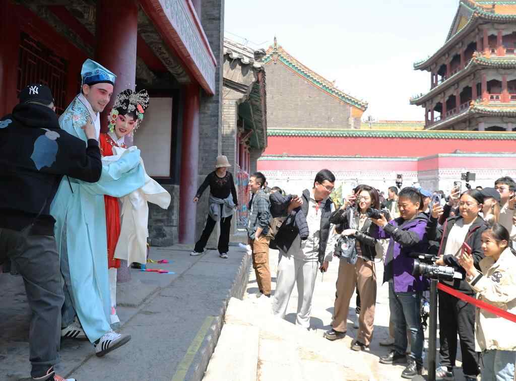 2024年4月30日,在沈阳故宫,来自俄罗斯的芭蕾舞演员与沈阳京剧院的演员互动。新华社记者 李钢 摄