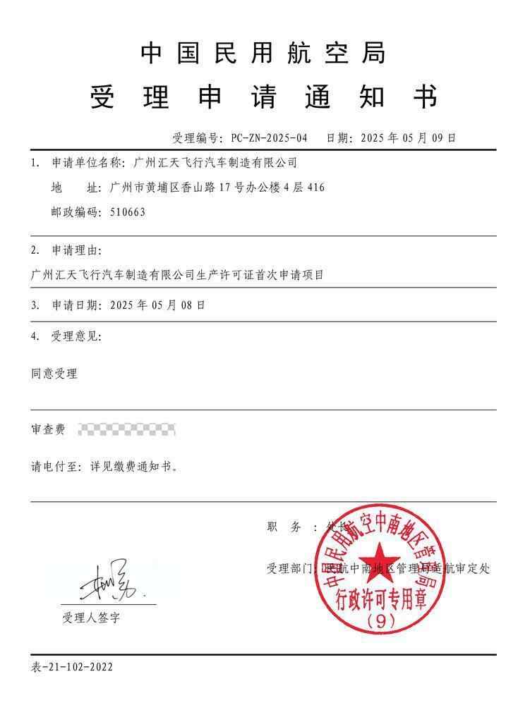 5月9日,广东低空经济龙头企业之一小鹏汇天迎来又一重要里程碑——“陆地航母”飞行体(代号:X3-F)生产许可证(PC)申请正式获得民用航空中南地区管理局受理,标志着飞行汽车产品量产体系开始接受局方审查。