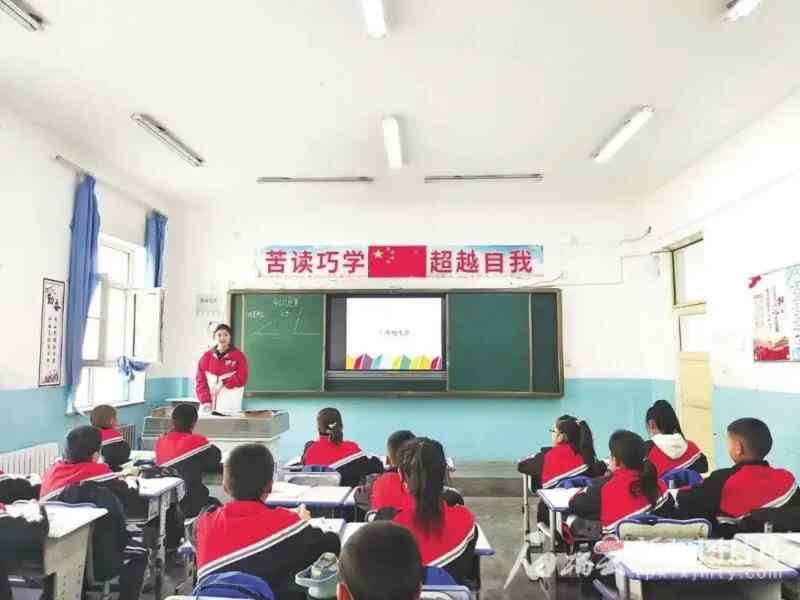 谢依特小学戍边支教西部计划志愿者服务队队员们来自全国各地,其中也有新疆本地的志愿者。这是来自和田师范专科学校的志愿者努尔比耶·热合曼在讲课(资料图)。谢依特小学供图