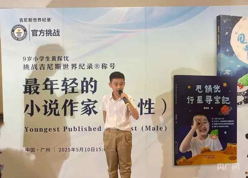 5月10日,广州9岁的小学生黄探忱成功挑战吉尼斯世界纪录,荣获吉尼斯世界纪录“最年轻的小说作家(男性)”称号。这一荣誉是一项全新的纪录,此前从未有人挑战成功。
