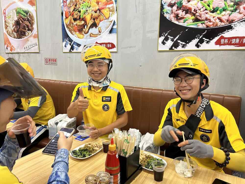 超市网约配送员小陈从暖新取餐处接过暖新餐后,前往自助区添加米饭,“我们干配送工作需要耗费很多体力,这里9.9元就能吃上现做的两荤一素营养餐,米饭任加、茶水任喝,对我们骑手真的很友好!”