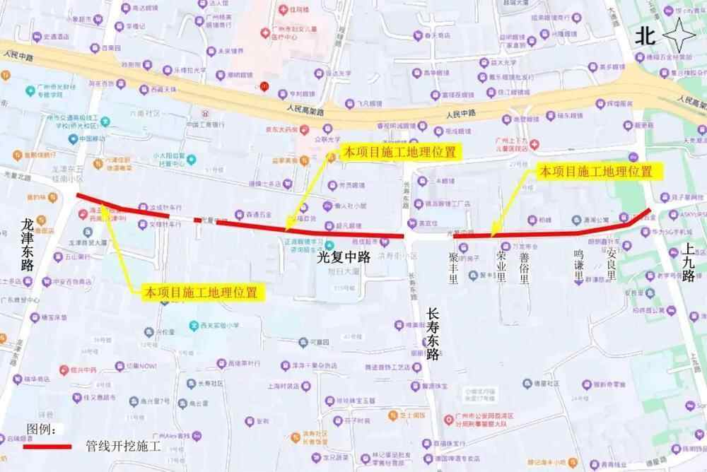 项目建设范围为荔湾区杨巷路(上九路-十八甫路)、荔湾区光复中路(龙津东路-上九路)、荔湾区龙津东路(和业广场-龙津苑)。