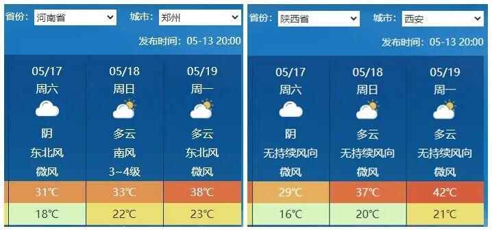 省会城市中,西安、郑州18日至19日最高气温也将达到38℃以上。