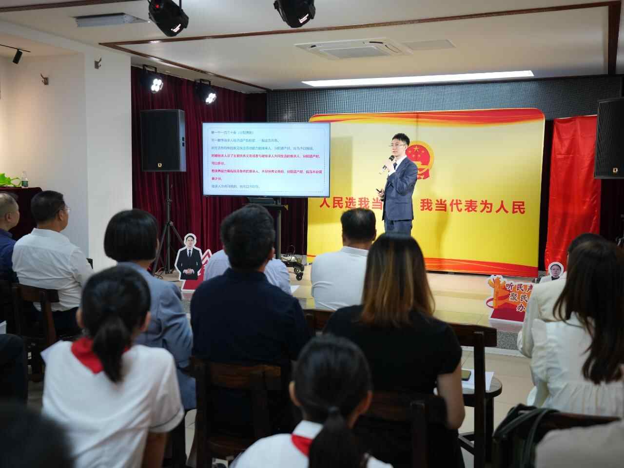活动现场,来自广东盈隆律师事务所的两位律师志愿者就财产继承、电梯加装等案例分享法律知识,人大北京街道工委为律师颁发“全过程人民民主AI宣讲员”聘书。普法互动系统依托都府社区基层立法联络单位志愿服务队,将《中华人民共和国民法典》等法律条文转化为生动案例,通过AI互动形式,让放学后聚集在会馆图书室的孩子们在互动中感知全过程人民民主。