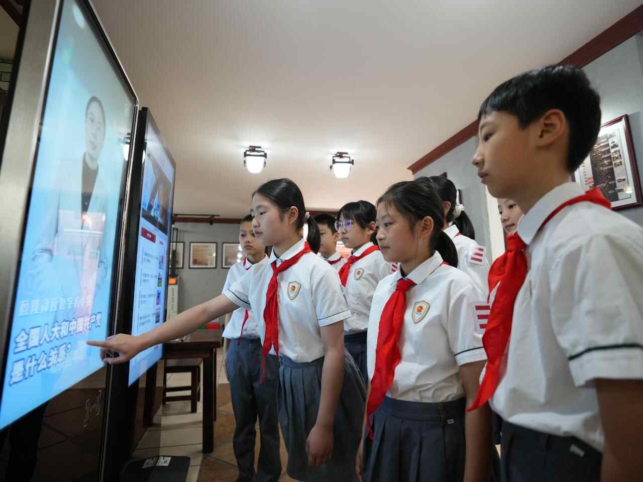 “人大代表是怎么产生的?”“两会是什么?”在广州市越秀区广府文化会馆里,广中路小学的同学们围着智能大屏争先提问。