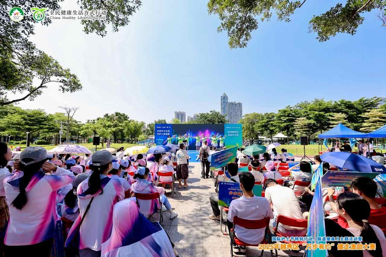 5月12日,由越秀区卫生健康局主办,越秀区卫生健康局工会委员会和越秀区疾病预防控制中心联合承办的2025年越秀区“万步有约”健走激励大赛启动仪式暨肠道健康月、国际护士节主题活动在二沙岛体育公园隆重举行。