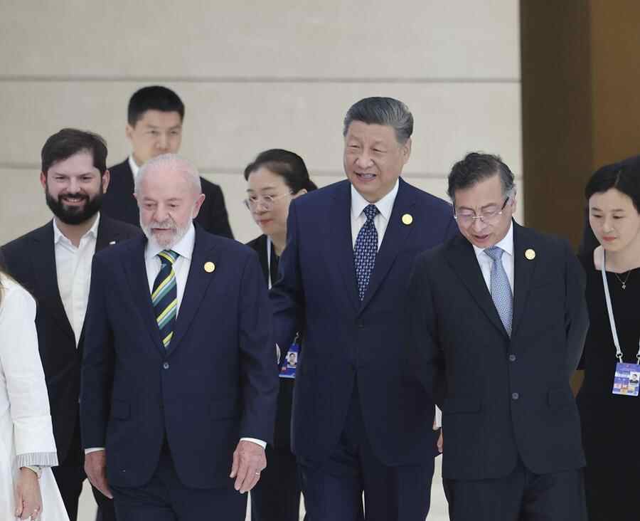 拉共体轮值主席国哥伦比亚总统佩特罗,巴西总统卢拉,智利总统博里奇,新开发银行行长、巴西前总统罗塞芙分别致辞。拉共体候任轮值主席国乌拉圭总统奥尔西特别代表宣读总统贺信。他们高度评价拉中论坛10年发展取得的丰硕成果,赞赏中国为推动拉中合作、促进拉美经济社会发展作出的重大贡献。各方重申坚定支持一个中国原则。各方表示,习近平主席提出的构建人类命运共同体理念和三大全球倡议,为世界开辟了和平繁荣进步的光明前景。面对充满不确定性的世界,拉中应携手合作、同舟共济,推动拉中命运共同体建设不断取得新进展,共创拉中合作美好未来。拉中双方要坚持相互尊重,坚定支持对方维护主权和自主选择发展道路;加强拉美各国发展战略同“一带一路”倡议对接,推动贸易、投资、基础设施、农业、科技、新能源、教育合作,实现互利共赢;推动文明交流对话,增进拉中人民相知相亲;坚定维护联合国权威,维护世界和地区和平稳定,支持多边主义、自由贸易,反对单边主义、保护主义、强权政治和霸凌行径,维护全球南方国家共同利益。