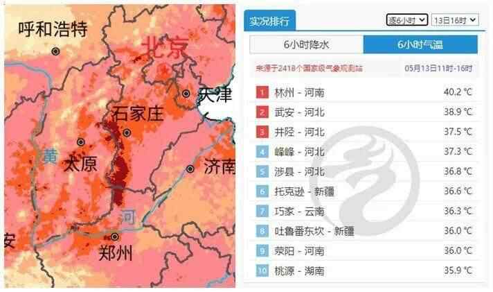 河南林州更是超过了40℃!昨日16时的全国气温榜单前十,北方城市占了八个——