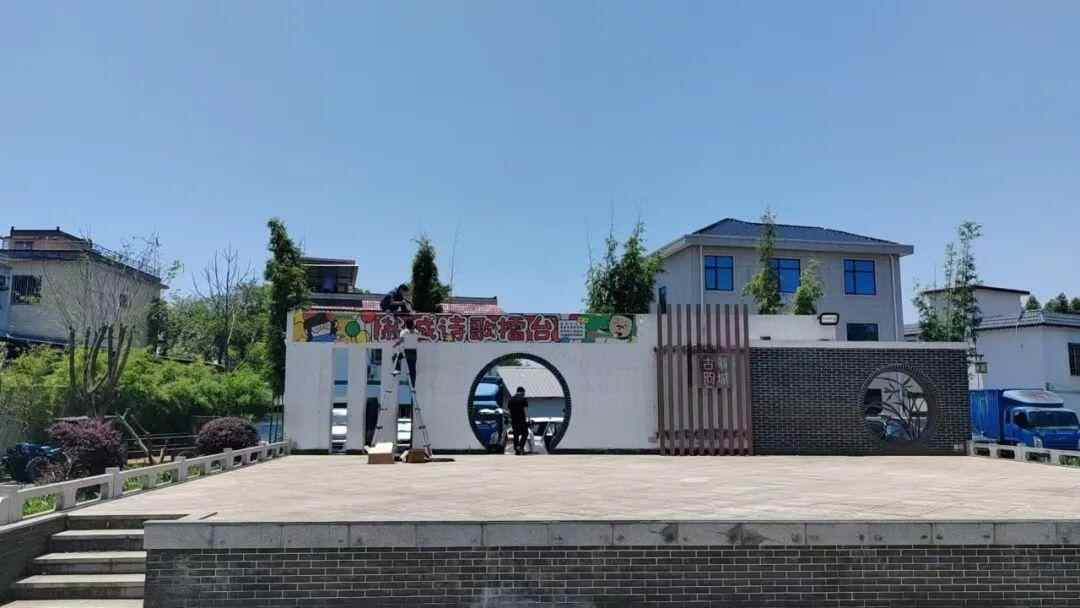 上午,朱海文发来消息说,翁城文化公园诗歌擂台主舞台正在装灯。他说目前的舞台比较高,担心孩子们爬来爬去的,容易出事故,所以建议在对面比较低的平台上举办,非常好。其实之前我就挺担心的,举办诗歌擂台时,不少孩子趴在舞台边,半个身子吊着,比较危险。