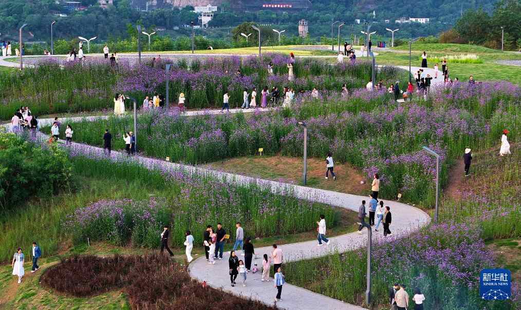 5月10日,人们在四川省泸州市江阳区茜草街道滨江生态公园游玩(无人机照片)。