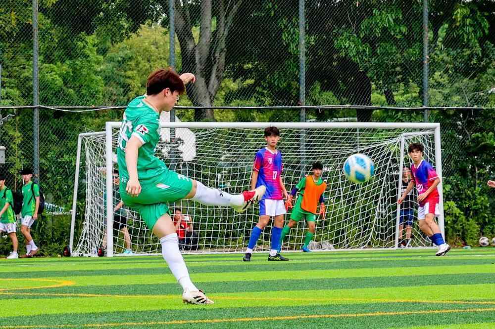 比赛正式进入激烈的角逐阶段。10日上午8:30,简短而隆重的开幕式点燃了现场的热情。各方嘉宾出席开幕式,为参赛队伍加油鼓劲。随后,首轮小组赛在9:00准时打响。在A组比赛中,广州市执信中学足球队与澳门培正中学足球代表队展开激烈对抗,双方球员在场上积极拼抢、默契配合,精彩的传球和射门不断上演,引得观众阵阵欢呼。与此同时,E组比赛中广州市培正中学足球队与香港培正中学足球队的对决也同样精彩,队员们顽强拼搏的精神展现得淋漓尽致。