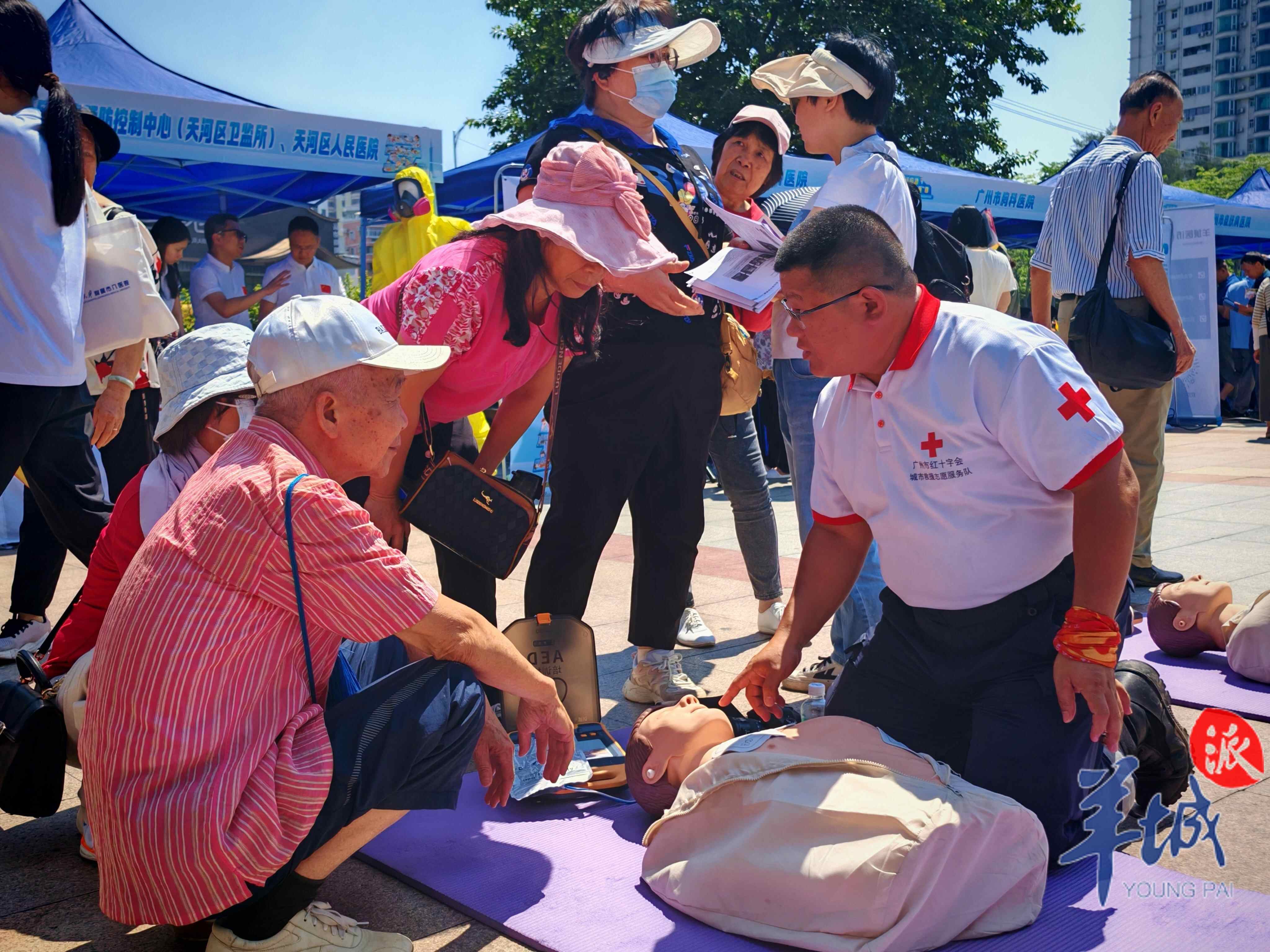 活动现场,广州市第一人民医院、广州市红十字会医院(市应急医院)、广州医科大学附属中医院等10余家市属高水平医疗卫生机构80余名专家及市红十字会志愿服务工作委员会10余名志愿者参与现场活动,展开烧烫伤及常见中毒处置、心理咨询、中医体质辨识、常见传染病防治等现场咨询,组织救护师资开展心肺复苏及AED操作使用等现场教学。