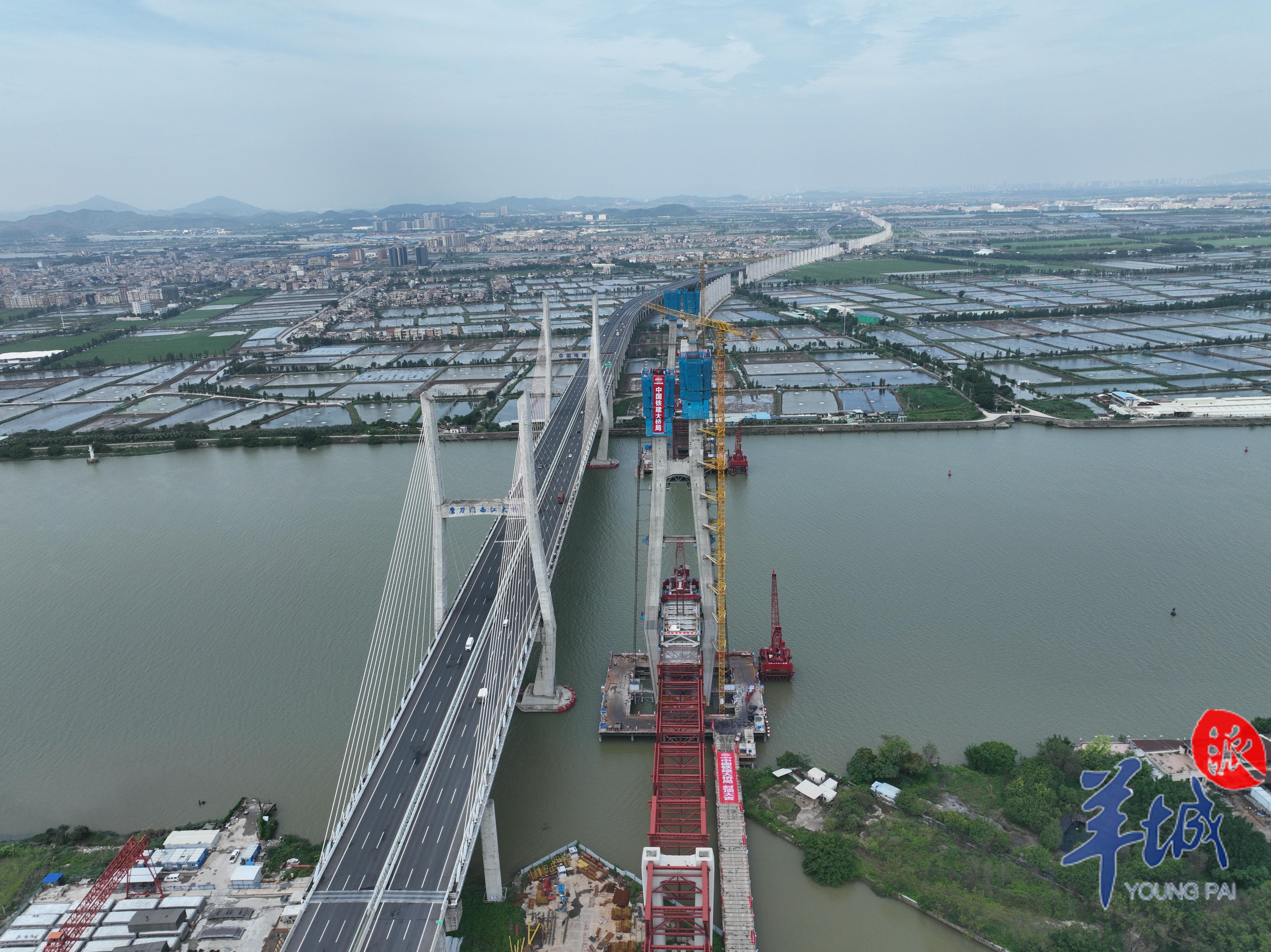 中国铁建大桥局承建的深江铁路11标项目,正线全长23.72千米,磨刀门主桥全长689.8米,主跨320米,跨越I级航道,高140米,主塔为H型桥塔,由上、中、下三个塔柱和上、下两道横梁组成,采用全球首创的钢桁架-部分包覆混凝土组合梁斜拉桥结构。