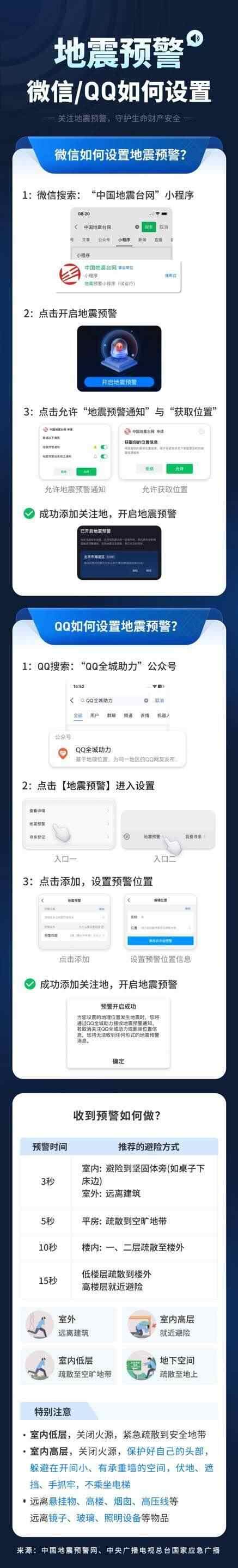 本次微信、QQ地震预警实现双平台全国覆盖,将进一步助力地震预警发挥减灾实效,为紧急避险和有效应对争取宝贵时间。