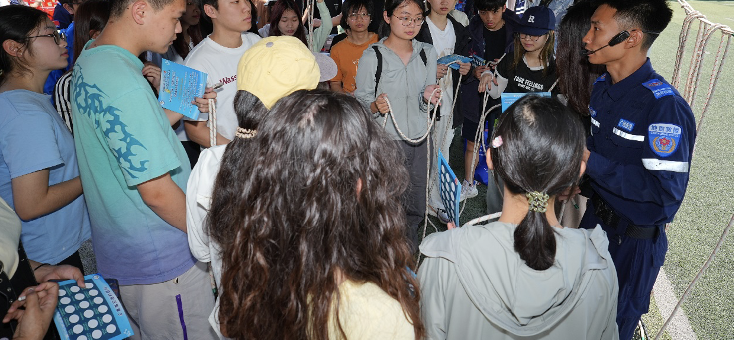本次活动设置了多项安全互动学习及体验摊位,分别有图文宣传及视频展播、防灾减灾救灾装备展示、救生缓降器逃生体验、心肺复苏技能体验、消防安全体验屋、应急绳结技能体验、防踩踏技能体验等活动摊位。